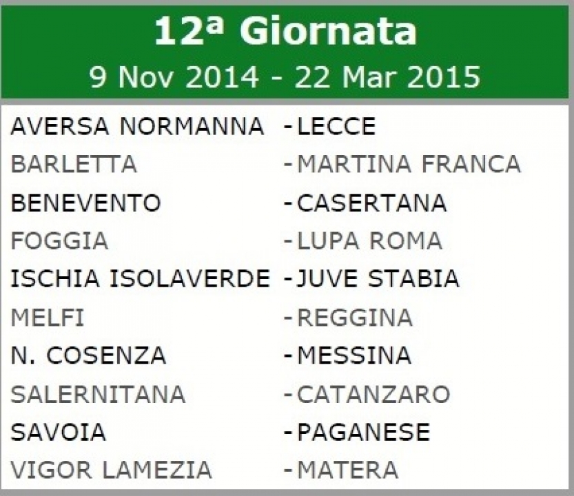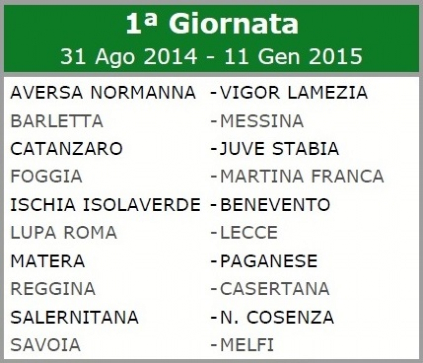 Calendario Lega Pro Gir. C 2014/15