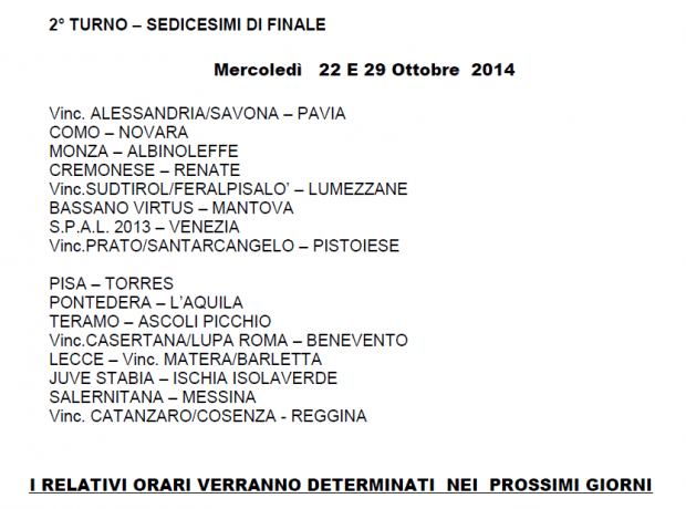 Coppa Italia Lega Pro, le gare del secondo turno