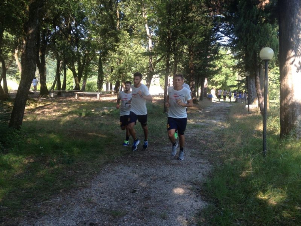 Secondo giorno di ritiro a Nocera Umbra per la Juve Stabia. La giornata si è aperta per il gruppo con una seduta di allenamento dedicata alla core stability, esercizi volti a perfezionare la capacità di controllare la posizione e il movimento del tronco sul bacino e sulle gambe. I calciatori, suddivisi in due gruppi, hanno poi effettuato delle ripetute sulla distanza degli 800 metri, percorrendo dei sentieri attraverso i boschi di Nocera Umbra. Al termine dell’impegnativa seduta mattutina di allenamento, l’intera rosa ha fatto ritorno all’Hotel Europa per il pranzo. Dopo un breve riposo pomeridiano, le Vespe sono tornate al campo “Marinangeli” per seguire le indicazioni tecnico-tattiche di mister Pancaro e del suo vice Savini, che stanno lavorando con grande impegno per dare organizzazione e solidità alle fasi di gioco. Sul finire della seduta di allenamento, intorno alle 19,30, la consueta attività di scarico per smaltire le tossine presenti nei muscoli in seguito all’attività fisica effettuata durante il giorno. Tornato in albergo, l’intero gruppo ha festeggiato il compleanno dello storico vicemagazziniere Sebastiano Di Ruocco.