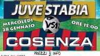 S.S. Juve Stabia rende noto che sono disponibili in prevendita, fino alle ore 15,00 del 28 gennaio, i tagliandi di ingresso per assistere alla gara Juve Stabia-Cosenza, che si disputerà mercoledì 28 gennaio alle ore 15,00 allo Stadio “Romeo Menti”, valevole per i Quarti di Finale della Coppa Italia Lega Pro 2014/2015.