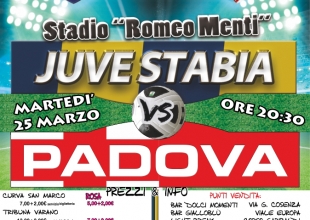 S.S. Juve Stabia S.p.A. rende noto che da oggi, venerdì 21 marzo, sono disponibili in prevendita, fino alle ore 20,30 del 25 marzo, i tagliandi di ingresso per assistere alla gara Juve Stabia-Padova, incontro valido per la 31° giornata della Serie B Eurobet 2013/2014, che si disputerà martedì 25 marzo alle ore 20,30 allo Stadio "Romeo Menti".