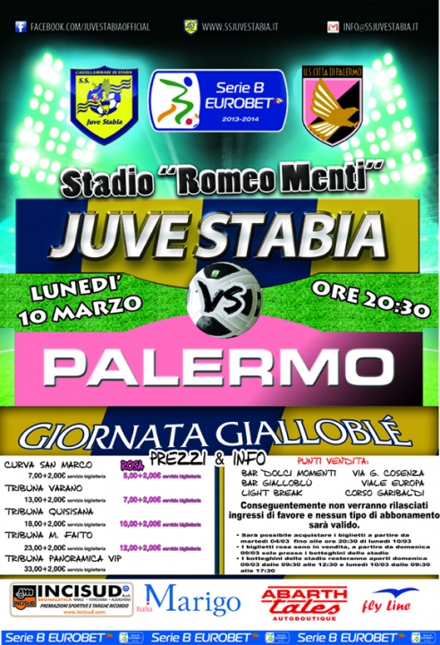 S.S. Juve Stabia S.p.A. rende noto che in occasione della gara Juve Stabia-Palermo, in programma lunedì 10 marzo alle ore 20,30, valevole per la 28° giornata della Serie B Eurobet 2013/14, è stata indetta la "Giornata Gialloblè". Conseguentemente non verranno rilasciati ingressi di favore e nessun tipo di abbonamento sarà valido.