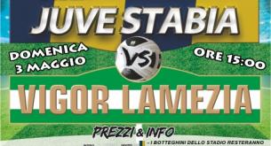 S.S. Juve Stabia rende noto che in occasione della gara Juve Stabia-Vigor Lamezia, in programma domenica 3 maggio alle ore 15,00, valevole per la 37a giornata del Girone C della Lega Pro Divisione Unica 2014/2015, saranno in vendita biglietti a prezzi popolari per tutti i settori dello Stadio “Romeo Menti” di Castellammare di Stabia. Data l’importanza del match ai fini della classifica e del raggiungimento dei play-off, è necessario il sostegno di tutti i nostri tifosi!