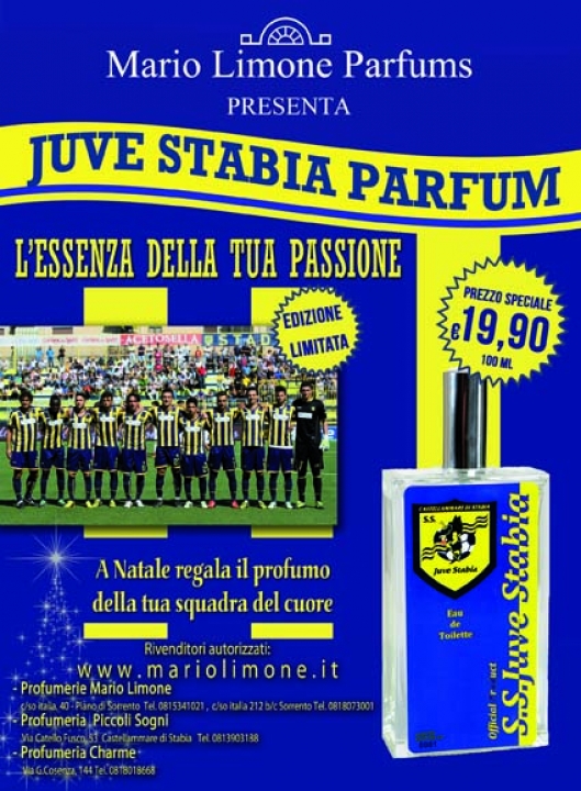 La S.S. Juve Stabia ha il piacere di invitarvi oggi, 27 novembre 2013, alle ore 18,00 presso la profumeria “Piccoli Sogni” in via Catello Fusco a Castellammare di Stabia per la presentazione dell’inedito “Juve Stabia Parfum”, il profumo ufficiale della S.S. Juve Stabia: l’essenza della tua passione!