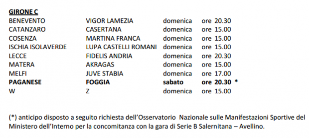 MODIFICA ORARIO GARA MELFI-JUVE STABIA
