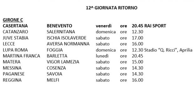 Le date e gli orari delle partite del Girone C continua