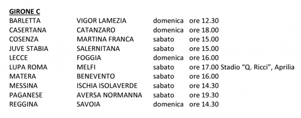 Le date e gli orari delle partite del Girone C continua