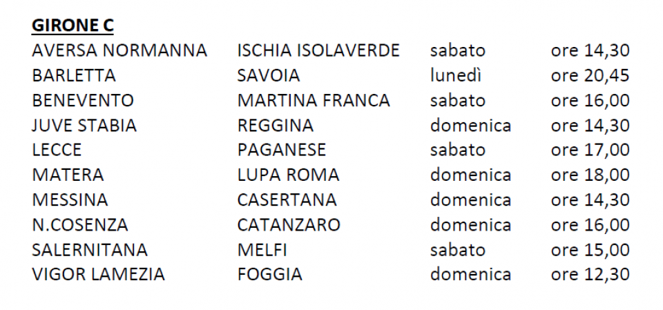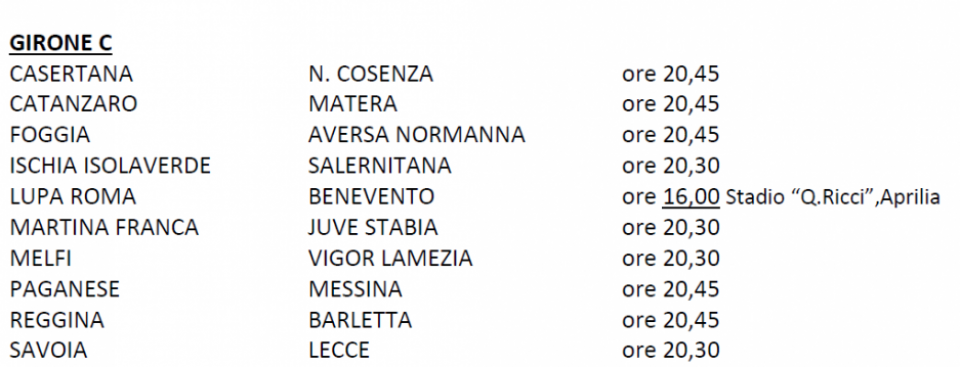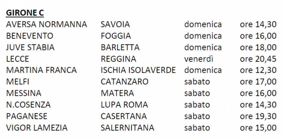 Le date e gli orari delle partite del Girone C continua