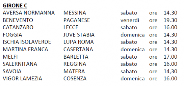 Le date e gli orari delle partite del Girone C continua