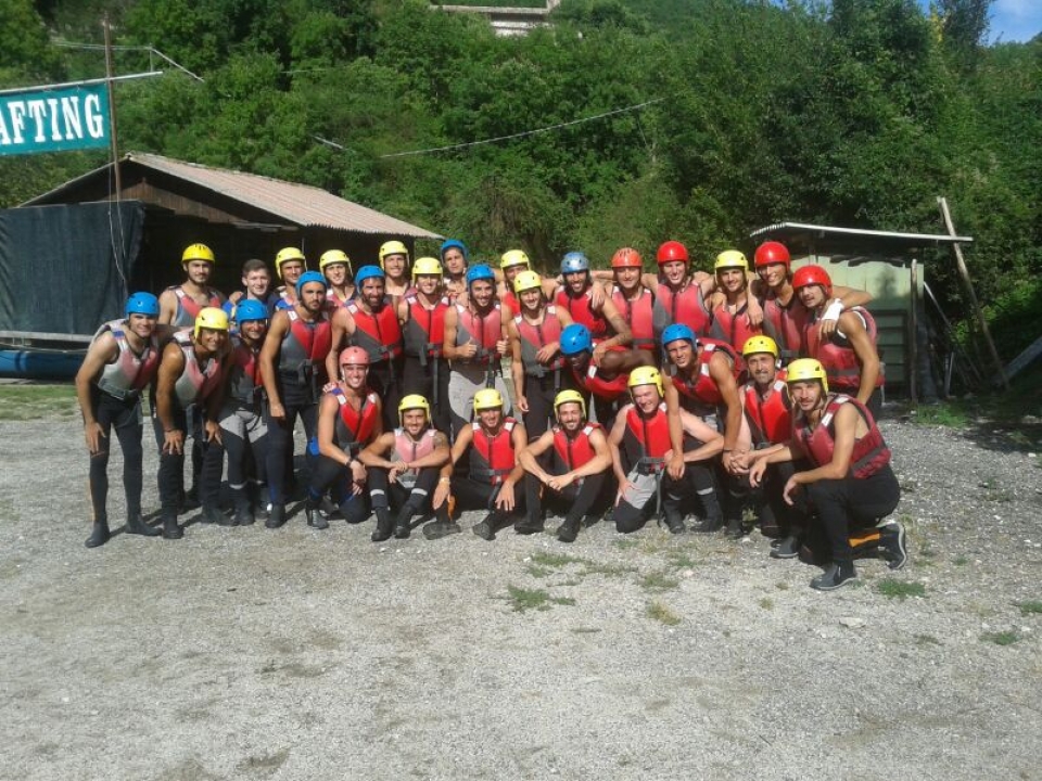 Morale alto per tutti i calciatori stamattina a Nocera Umbra, dopo la vittoria di ieri nell’amichevole col Foligno e i primi applausi ricevuti dai tifosi stabiesi presenti al “Marinangeli”. Mister Pancaro, dopo aver fatto i complimenti al gruppo per l’impegno dimostrato finora, ha concesso ai calciatori il pomeriggio libero, in vista dell’ultima impegnativa settimana di ritiro. Stamattina allenamento in piscina per tutti, con esercizi finalizzati allo sviluppo della resistenza muscolare. All’ora di pranzo è arrivato in ritiro il nuovo acquisto Giovanni La Camera, che si è aggregato ufficialmente al gruppo gialloblù. I calciatori hanno trascorso il pomeriggio libero nella vicina Norcia, dove sotto la guida di esperti istruttori di rafting hanno effettuato la discesa del fiume Corno, percorrendo 7 km di rapide divertenti e spumeggianti.