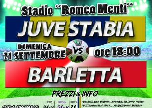 S.S. Juve Stabia rende noto che sono disponibili in prevendita, fino alle ore 18,00 del 21 settembre, i tagliandi di ingresso per assistere alla gara Juve Stabia-Barletta, che si disputerà domenica 21 settembre alle ore 18,00 allo Stadio “Romeo Menti”, valevole per la 4a giornata del Girone C della Lega Pro Divisione Unica 2014/2015.