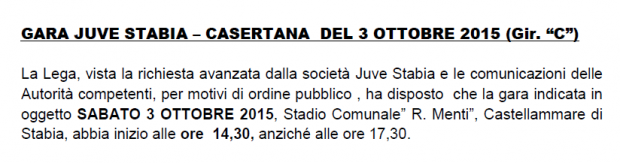 Juve Stabia - Casertana, variazione orario
