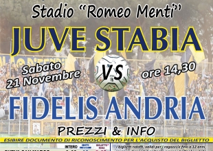 S.S. Juve Stabia rende noto che sono disponibili in prevendita, fino alle ore 14,30 del 21 novembre, i tagliandi di ingresso per assistere alla gara Juve Stabia-Fidelis Andria, che si disputerà sabato 21 novembre alle ore 14,30 presso lo Stadio “Romeo Menti”, valevole per la 12a giornata del Girone C della Lega Pro Divisione Unica 2015/2016.