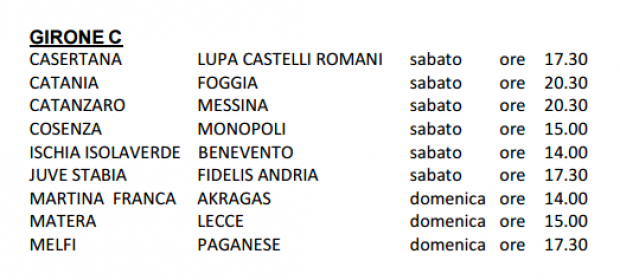 Le date e gli orari delle partite del Girone C continua