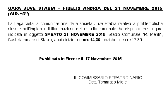 Juve Stabia-Melfi, arbitra Amabile