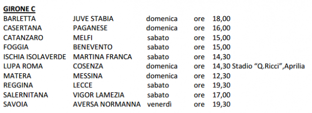 Le date e gli orari delle partite del Girone C continua