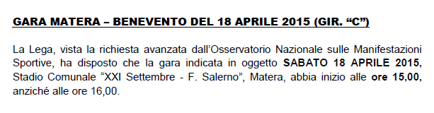 Programma Gare 17a Giornata