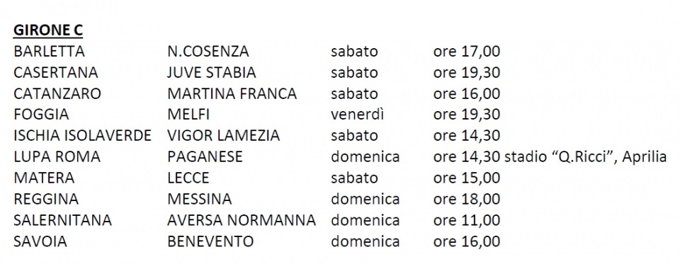 Le date e gli orari delle partite del Girone C continua